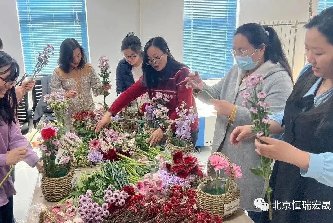 陽春三月,花香四溢,為慶祝國際婦女節,進一步豐富女職工的精神文化生活,提高美學素養,恒瑞宏晟組織女同胞們開展以“與花相伴,綻放芳華”為主題的藝術插花活動。辦公室花香濃郁,歡樂且溫馨。