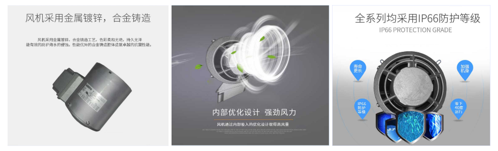wistro風(fēng)機(jī)采用金屬鍍鋅、合金鑄造,能防護(hù)海水的侵蝕;性能優(yōu)異的合金鑄造腔體造就抗震性能,風(fēng)機(jī)通過背部吸入的優(yōu)化設(shè)計(jì)取得更高風(fēng)量;全系列風(fēng)機(jī)采用IP66防護(hù)等級,加強(qiáng)機(jī)身,壽命更長,適用于各種場合模塊化系統(tǒng)。特殊型號可以在零下40度工業(yè)環(huán)境中運(yùn)行。