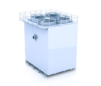 對于這種類型,風機位于冷卻塔的進氣口。環(huán)境空氣通過離心風機流經(jīng)冷卻塔。