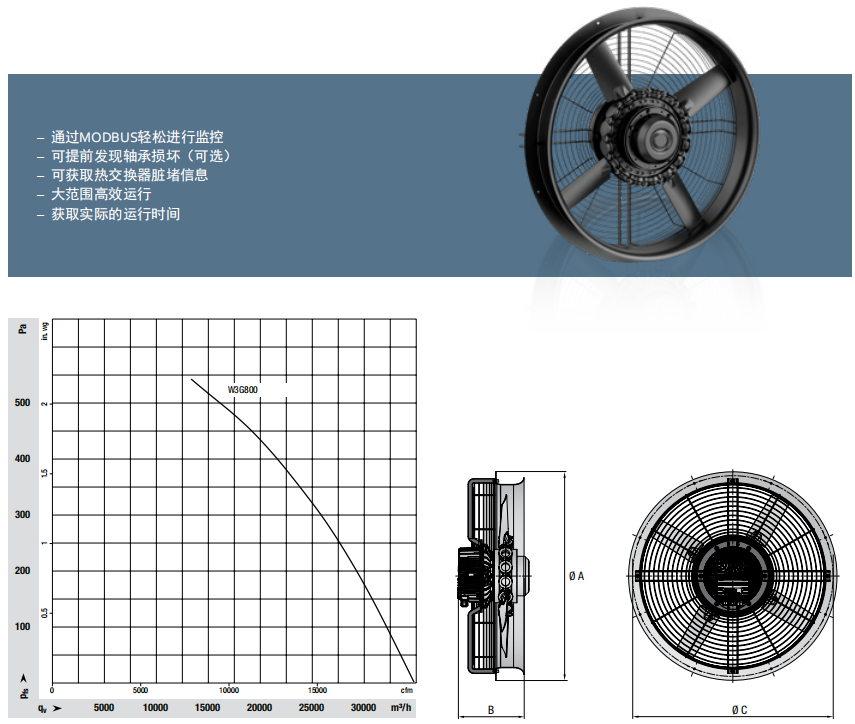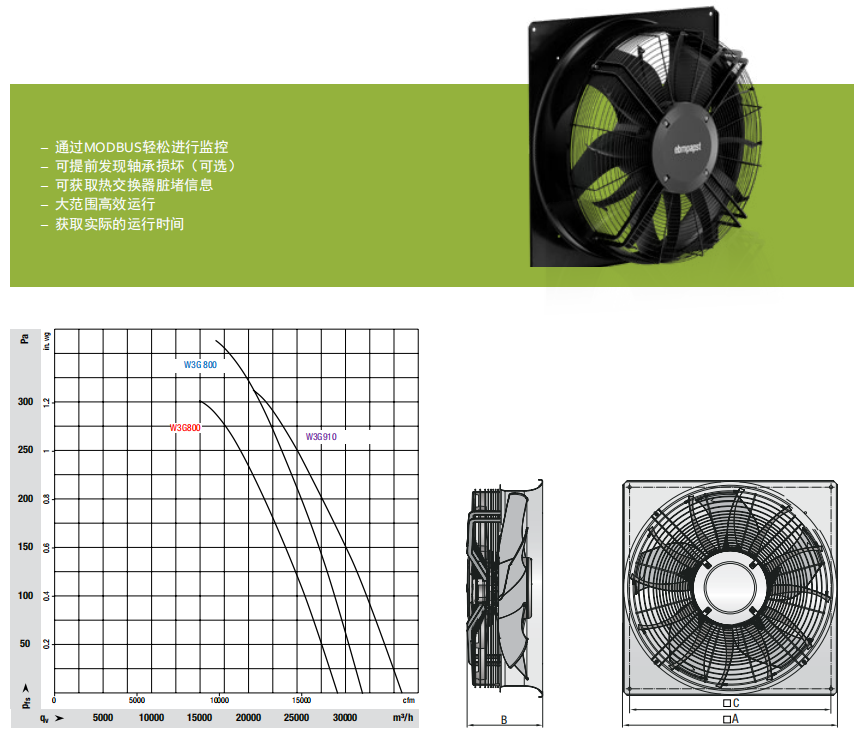 借助新型EC中壓軸流風機,我們的高效綠色科技EC技術(shù)也能為各種中壓范圍的應(yīng)用提供理想的解決方案。這是一個新的嘗試,但能將您的工作變得更簡單。方案是由電機、葉輪和集成變頻器組成的整體系統(tǒng),配置完整。