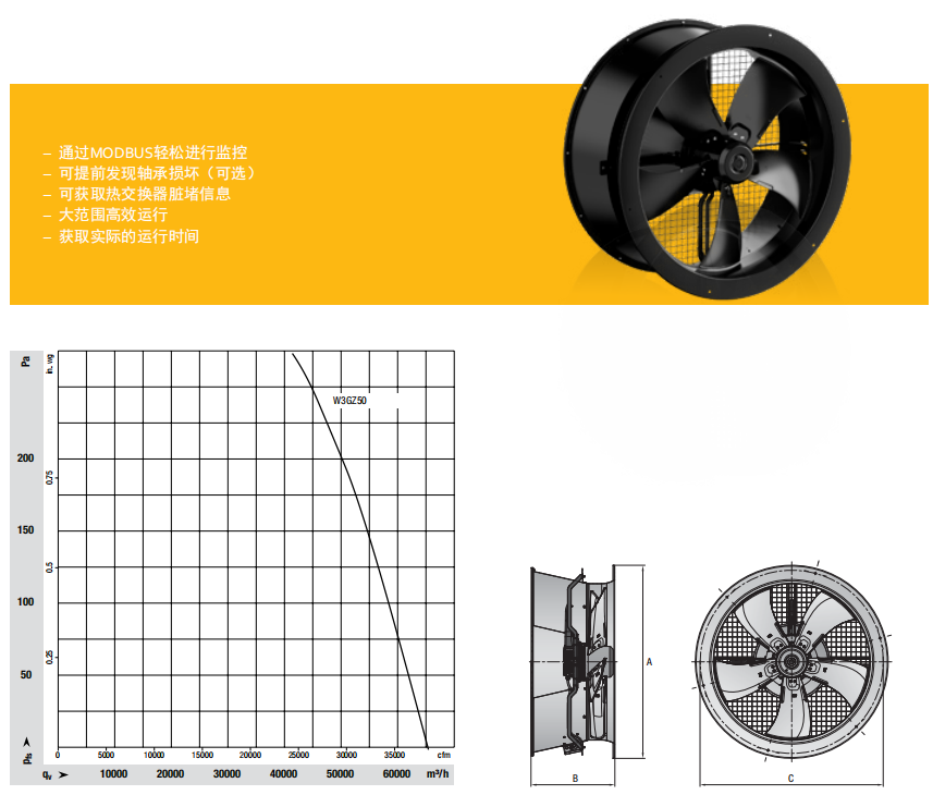 W3G Z50憑借其高效的空氣動力學特性、集成的驅(qū)動器和接口,非常適合高效率的應(yīng)用需求。搭配有帶集成擴散器的雙法蘭外殼,使其成為軸流風機靜音運行的杰出典范。