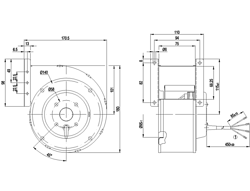 G1G140-AV17-02風量:400m³/h 電壓:24v 電流:2.5A 功率:54W 轉速:1750r/min