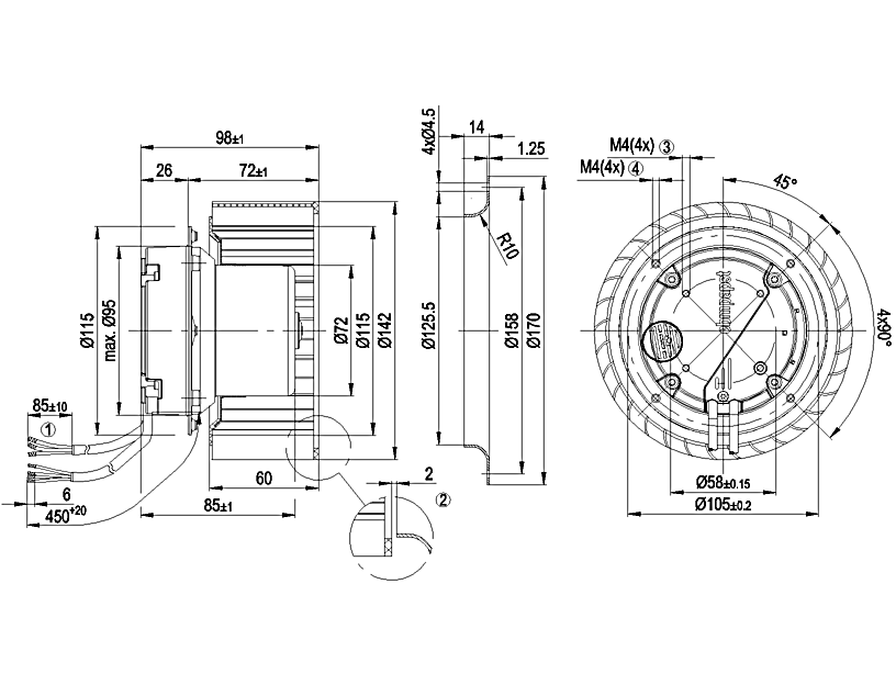 R3G190-RD45-03 電壓:240V 電流:1.35A 功率:169W 轉速:4120r/min 頻率:50Hz