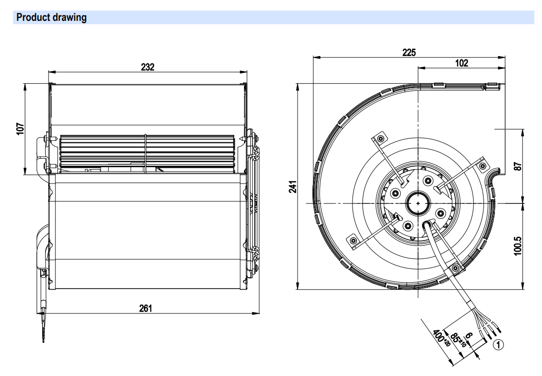 D1G133-AB29-52風量:700m³/h 電壓:24v 電流:5.6A 功率:105W 轉速: 1780r/min