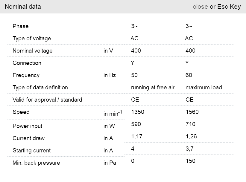 G1G140-AV21-02風量:410m³/h 電壓:48v 電流:1.3A 功率:54W 轉速:1750r/min