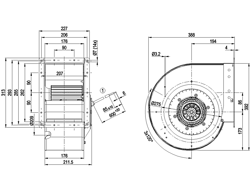 G1G160-BH29-52風量:505m³/h 電壓:24v 電流:5.8A 功率:105W 轉速:1750r/min