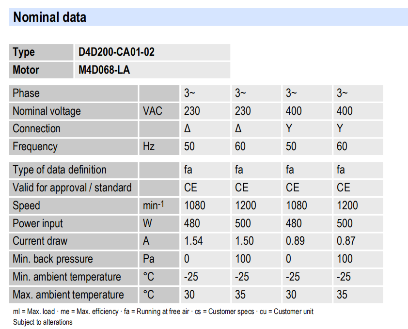 D1G160-DA33-52風量:980m³/h 電壓:48v 電流:2.9A 功率:112W 轉速:1250r/min