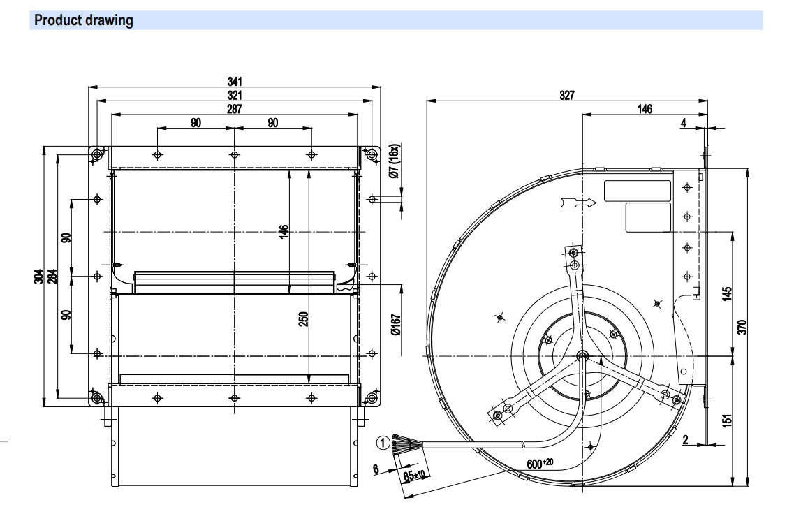 D1G160-DA19-52風量:980m³/h 電壓:24v 電流:5.6A 功率:112W 轉速:1250r/min
