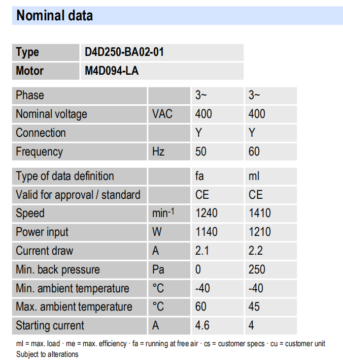 D1G160-DA33-52風量:980m³/h 電壓:48v 電流:2.9A 功率:112W 轉速:1250r/min