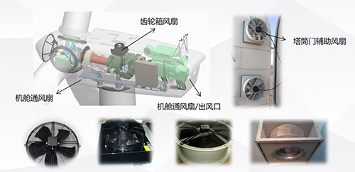 經過氣流的正壓導入,及在機組內的分流,風機對機組內各部件進行降溫,提高了降溫的效率和效果。風電機組艙室空間有限,風機結構緊湊,安裝便利;高防塵防水等級為風電機組的正常運行提供保障。