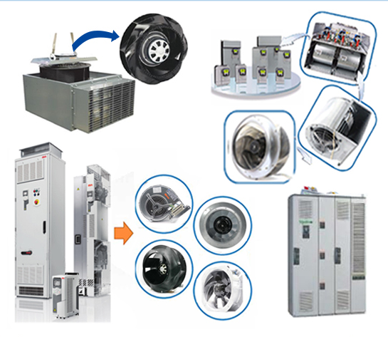 變頻器底部的大風扇是用來給變頻器的IGBT等大功率原件散熱的,小風扇是用來給CPU板、驅動板、電源板等電子部分散熱。Ebmpapst離心風機具有極低的噪音水平和高功率密度,它們可以滿足狹小空間及大風量的需求,葉輪是根據空氣動力學和幾何要求設計的。為了獲得更佳效率,除了電壓控制的異步電動機外,還使用了高性能的Green Tech EC電動機。兩種驅動器類型均可在整個功率范圍內使用。