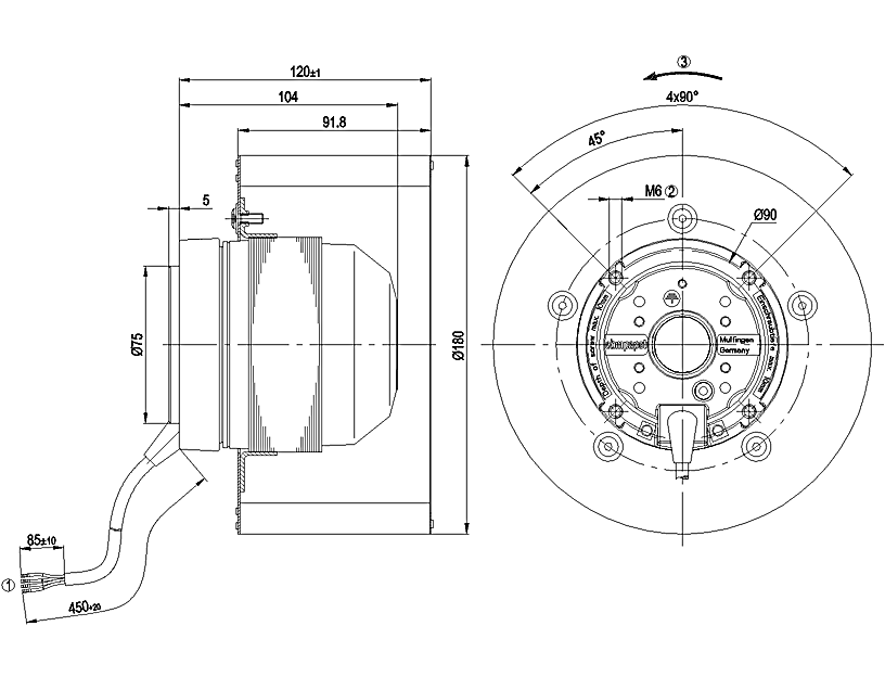 德國ebm全新R4E180-AS11-05離心風機曲線圖