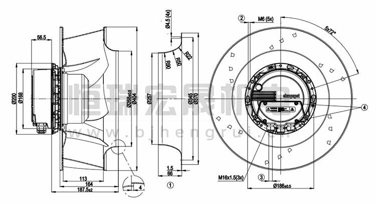 德國ebmpapst R3G400-AM56-11離心風機結構圖