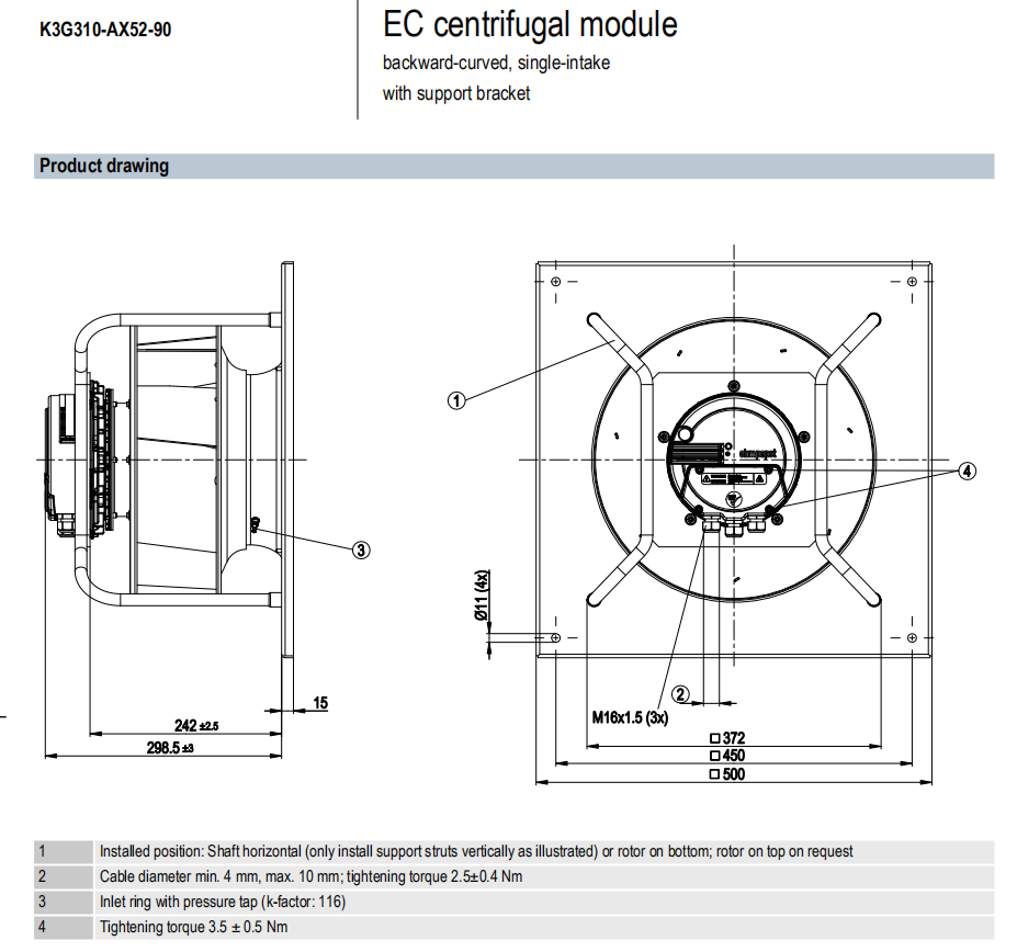 德國ebmpapst K3G310-AX52-90離心風機結構圖