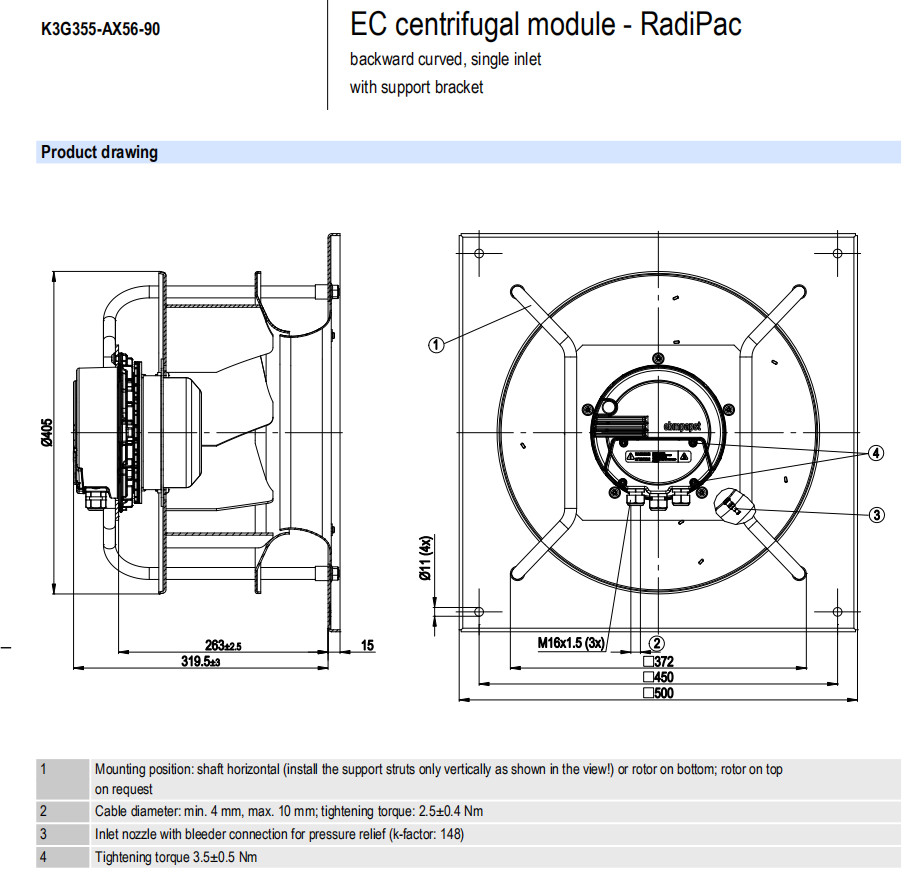 K3G355-RS02-H2電壓:200-277V電流:2.20A功率:500W 轉速:1850r/min 重量:11.6KG