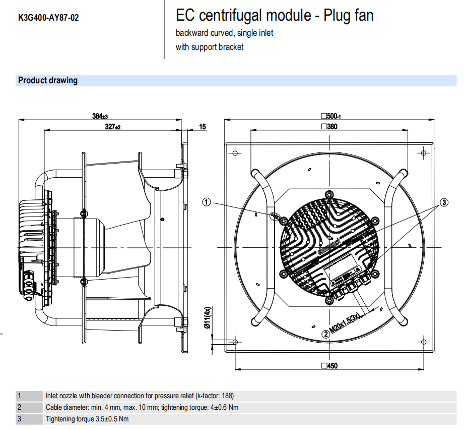 K3G450-RT03-H2電壓:200-277V電流:2.20A功率:500W 轉速:1260r/min 重量:7.5KG