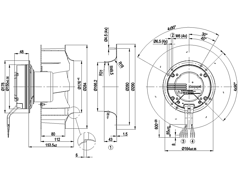 德國ebmpapst R3G250-AT39-71離心風機結構圖