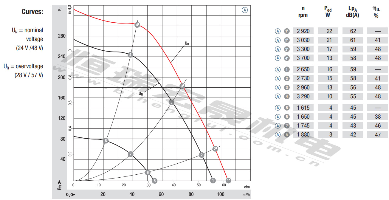 R1G108-AB41-02風量:200m³/h 電壓:48v 電流:1 A 功率:42W 轉速:3000r/min