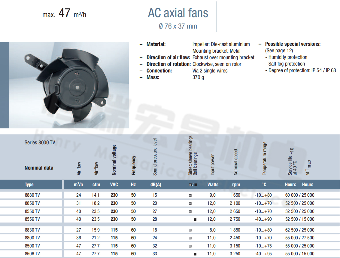 8880TV風量:24m³/h 電壓:230v 電流:/ 功率:9W 轉速:1650r/min