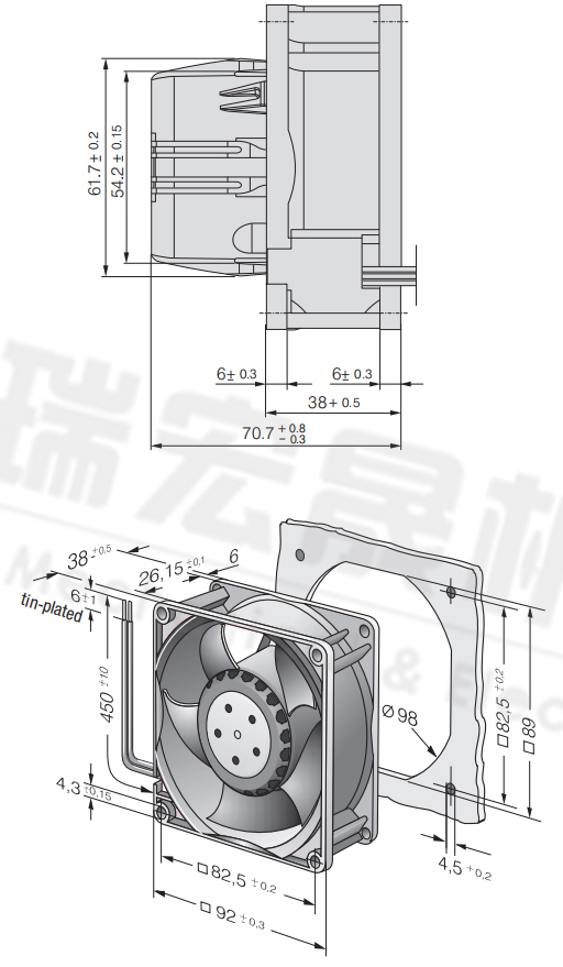 AC100MR風量:90m³/h 電壓:230v 電流:5.0A 功率:3.8W 轉速:3150r/min