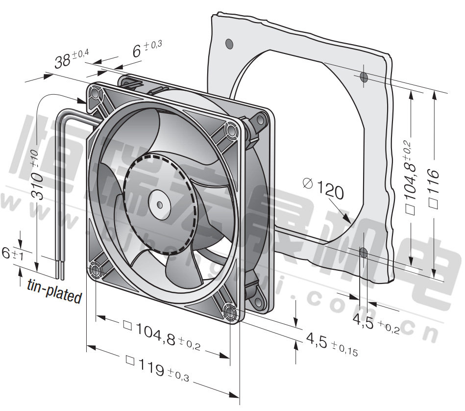 DV 6424 風量:530m³/h 電壓:24v 噪音:65Db 功率:40W 轉速:4300r/min