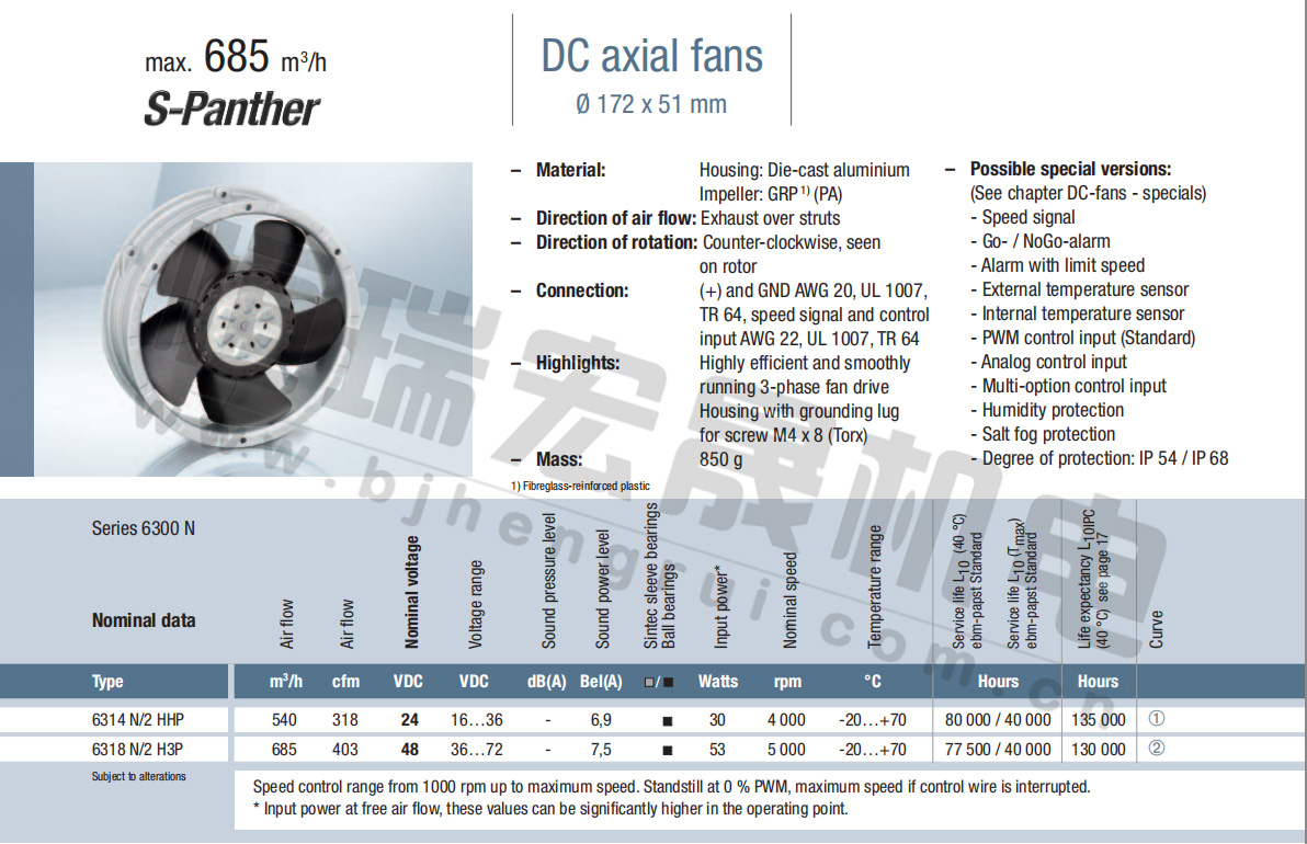 6314/2NP風(fēng)量:470m³/h 電壓:24v 噪音:56Db 功率:23W 轉(zhuǎn)速:4400r/min
