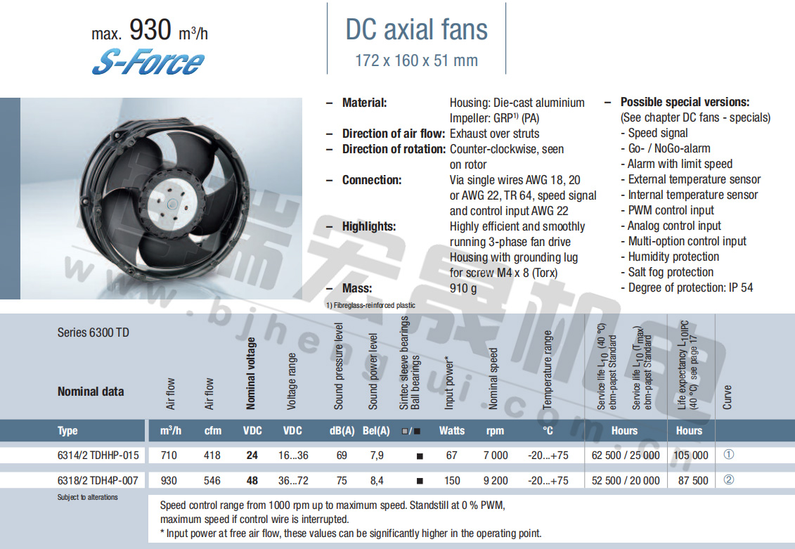 6314/2HP風量:545m³/h 電壓:24v 噪音:58Db 功率:31W 轉速:5000r/min