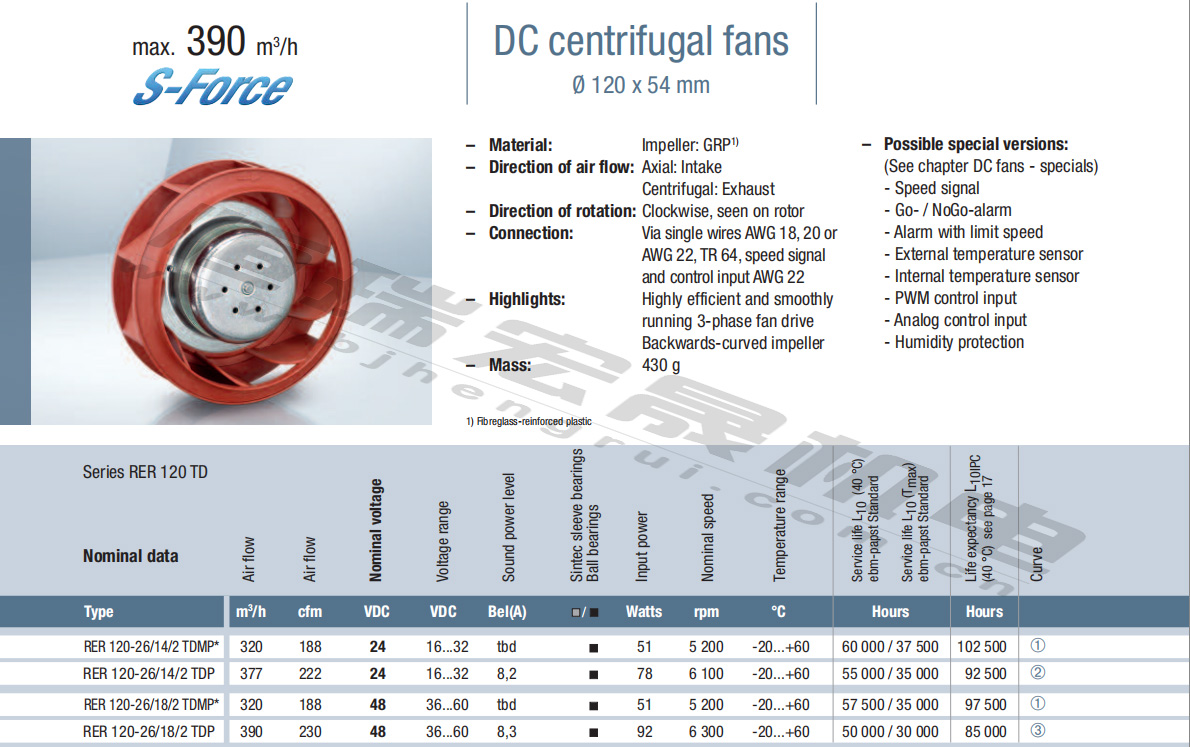 低價熱賣RER120-26/18/2TDMP* RER120-26/18/2TDP緊湊型風機,適用于通風散熱制冷行業