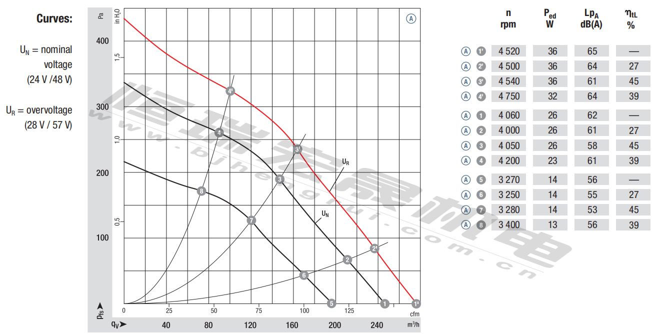 G1G133-DE03-02風量:225m³/h 電壓:48v 電流:1.1A 功率:40W 轉速:2000r/min