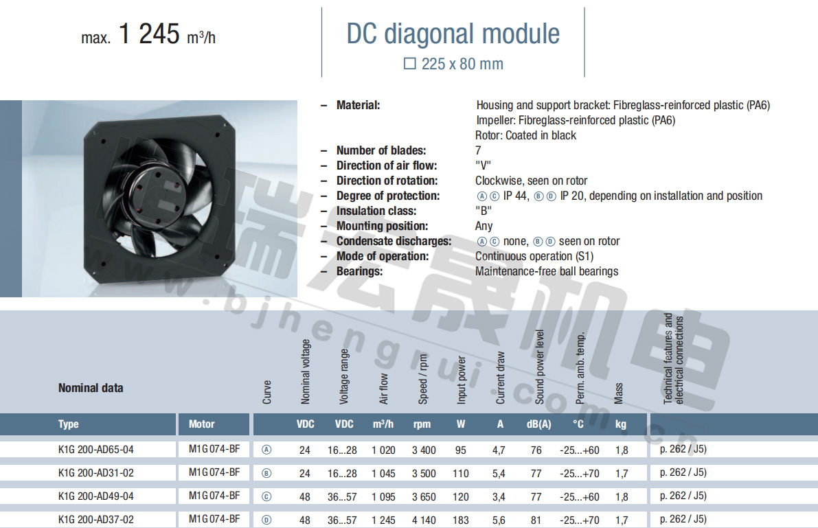K1G200-AD37-02風量:1245m³/h 電壓:24v 噪音:81Db 功率:183W 轉速:4140r/min