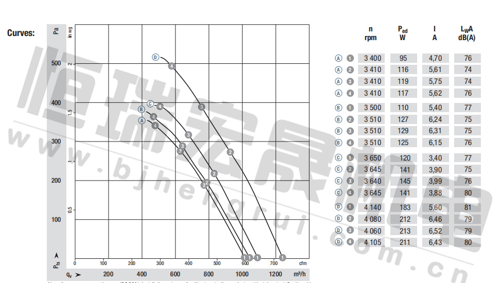 德國ebm全新K1G200-AD31-02 K1G200-AD49-04緊湊型風機曲線圖