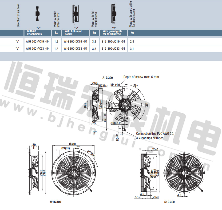 原裝緊湊型ebm風機W1G 300 A1G300 S1G300的規格圖