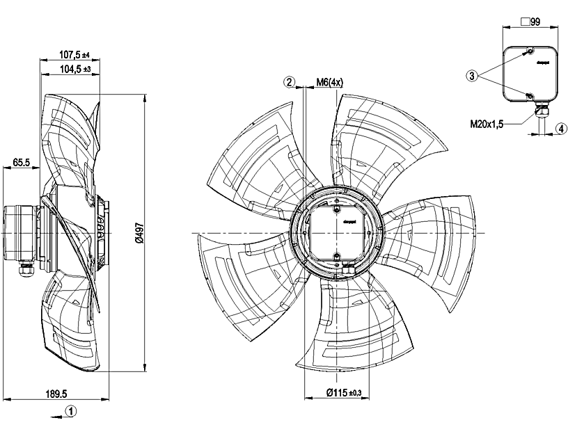原裝軸流ebm風機A8E500-AJ03-01的規格圖