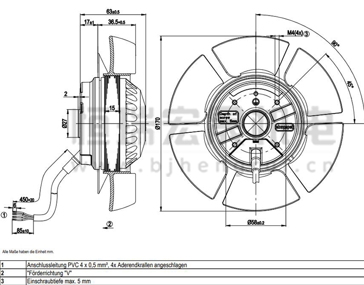 德國ebmpapst A2E170-AF23-01風機結構圖