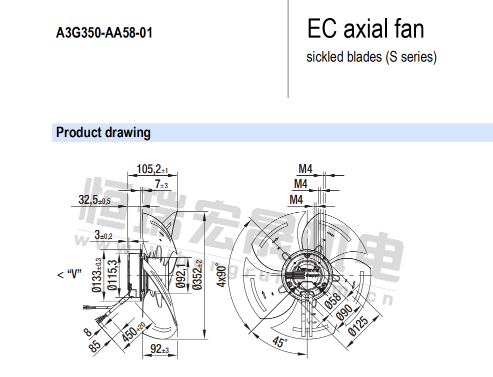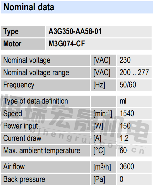 北京恒瑞宏晟低價供應A3G350-AA58-01軸流風機,適用于通風散熱制冷行業