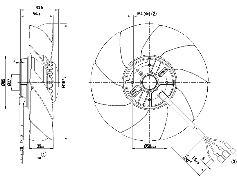 K1G200-AD65-04風量1020m³/h 電壓:24v 噪音:76Db 功率:95W 轉速:3400r/min