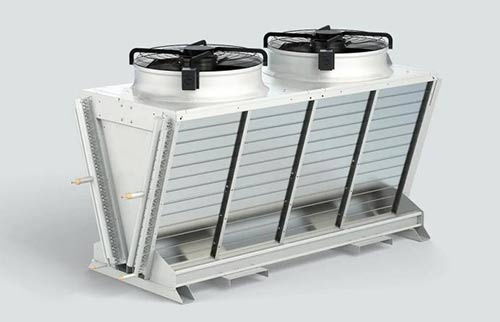在風冷式冷凝器中,通過將高溫氣態制冷劑冷凝,軸流風機 將高溫氣體排出至外界空氣環境中,從而達到散熱的目的。 風冷散熱的過程普遍具有高效節能的優勢。