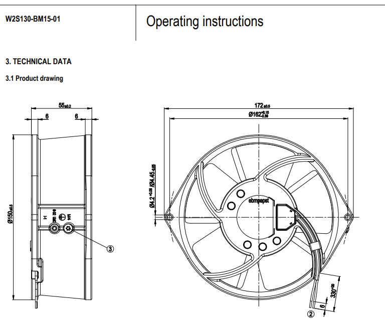 德國ebm全新W2S130-BM15-01軸流風機規格圖
