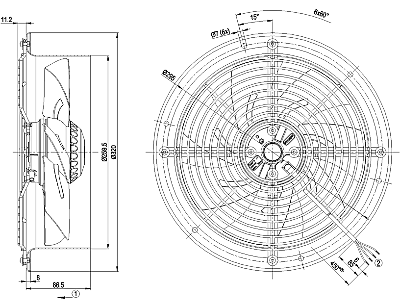 W2E250-HP06-01風(fēng)量:1695m³/h 電壓:230v 電流:0.55A 功率:125W 轉(zhuǎn)速:2320r/min