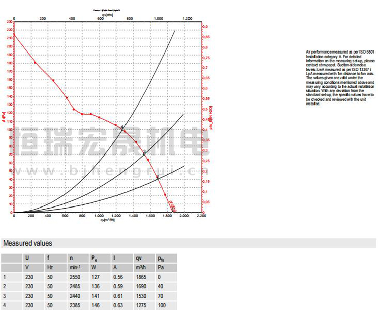 德國ebmpapst W2E250-HL06-05風機曲線圖