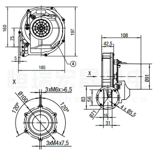 德國ebmpapst EC離心風機 RG148/1200-3612 結構圖