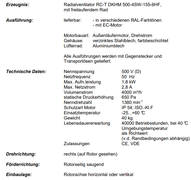 離心風(fēng)扇RC-T DKHM 500-4SW-155-6HF,帶自由運轉(zhuǎn)的輪