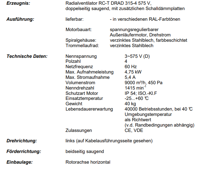 RC-T DRAD 315-4 575 V離心風機,適用于通風散熱制冷,能源技術行業