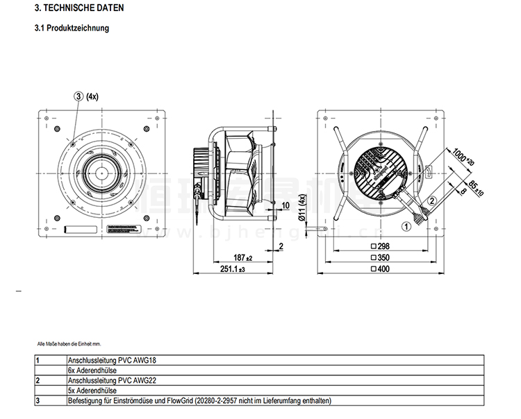 德國ebmpapst K3G250-PR17-W9/F01風機規格圖