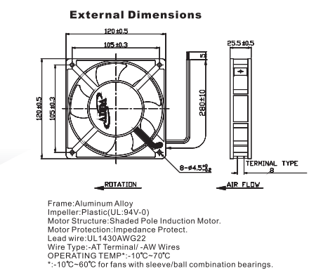風葉直徑 120*120*25mm