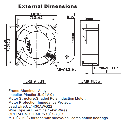 ADDA AA8381HS-AW 8038 115V 0.13A通風(fēng)散熱風(fēng)扇