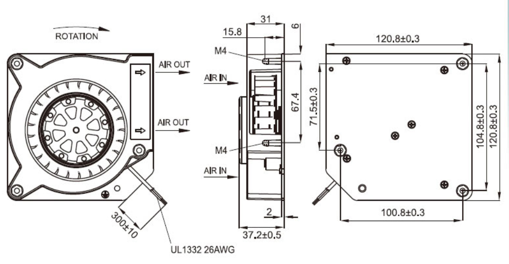 鼓風扇采用離心扇馬達結構, 進出風口的集中設計, 能讓風吹更遠