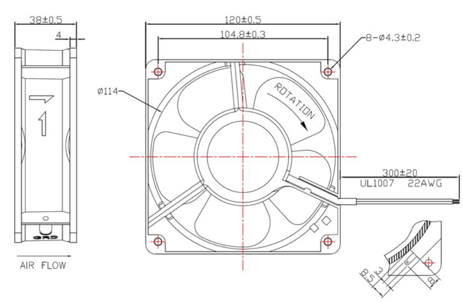 | 壽命: | 鋼珠軸承: 50,000小時(at 40℃) | ||||||||||||||||||||