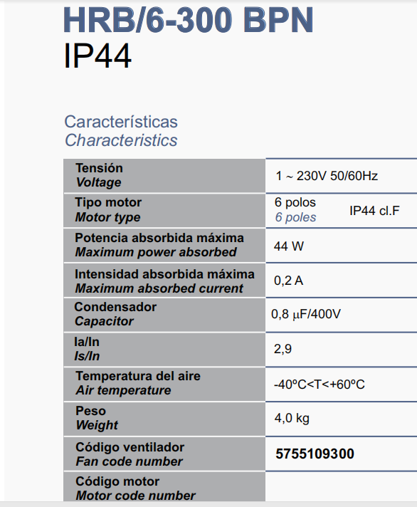 產品型號:HRB/4-300 BPN 5755109300