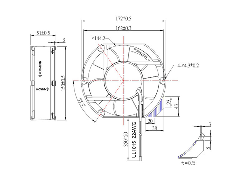 EC防爆風機 UFT15PBPB23M1D4A結構圖